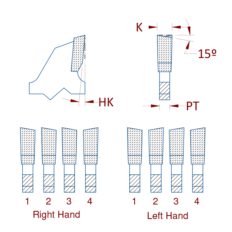 Industrial double end trim saws. Designed for finish trim cuts on solid wood when tear out is a concern. 3 in 1 grind provides 3 times as many tips cutting on the finished edge for superior finish quality on 1 side of the cut.